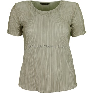 Taupe Short Sleeve Plisse Top is available for purchase in increments of 1