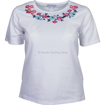 White Floral Embroidered T-Shirt Top