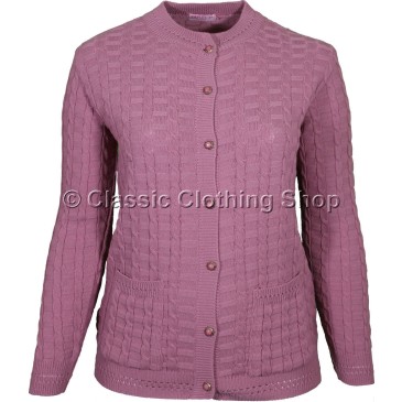 Pink Round Neck Cable Cardigan is available for purchase in increments of 1