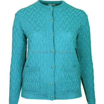 Turquoise Round Neck Cable Cardigan is available for purchase in increments of 1