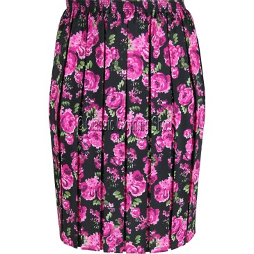 Black & Pink Floral Naomee Full Elastic Pleated Print Skirt